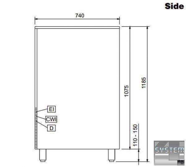 Профессиональный льдогенератор имеет габаритные размерами: 840мм (длина), 740мм (глубина), 1075мм (высота).