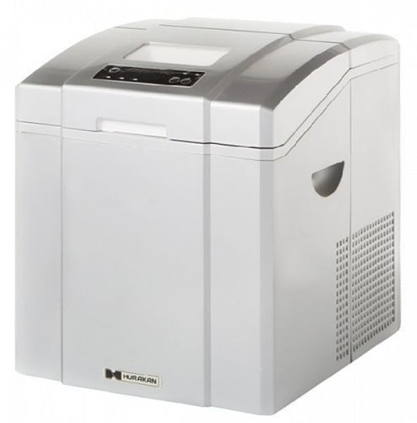 Льдогенератор оснащен бункером для готового льда вместимостью 1,5 кг и не требует для работы подключения к водопроводу. Снабжен мощным холодильным агрегатом для обеспечения высокой производительности, оснащен прочным нержавеющим корпусом, а крышка бункера выполнена из пищевого пластика.