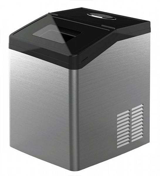 Льдогенератор оснащен бункером для готового льда вместимостью 3 кг и не требует для работы подключения к водопроводу. Снабжен мощным холодильным агрегатом для обеспечения высокой производительности, оснащен прочным нержавеющим корпусом, а крышка бункера выполнена из пищевого пластика.