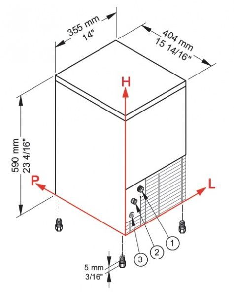 Воздушное охлаждение, вес стандартного кубика 13 г, хладагент R404A. Температура окружающей среды от +10...+43 ° С, а температура воды должна быть от +3 ...+32°С.