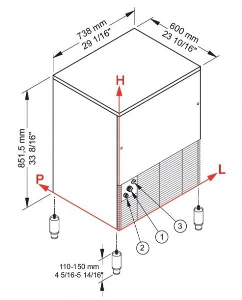 Корпус льдогенератора выполнен из высококачественной нержавеющей стали, оснащен системой автоматического поддержания уровня льда в бункере. При заполнении бункера льдогенератор прекращает выработку льда, а по мере его расходования компенсирует первоначальное количество готового льда.