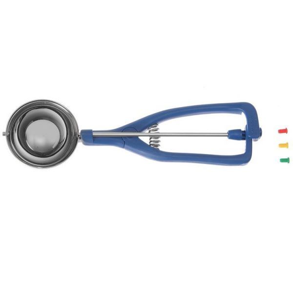 Ложка для мороженого, шариковой формы, выполнена из нержавеющей стали с ручками из полиамида. Продуктивность - 1/30 литра.