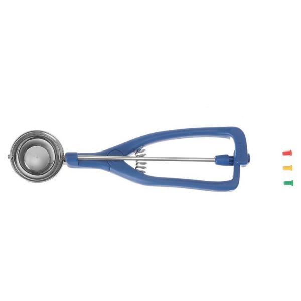 Ложка для мороженого, шариковой формы, выполнена из нержавеющей стали с ручками из полиамида. Продуктивность - 1/30 литра.