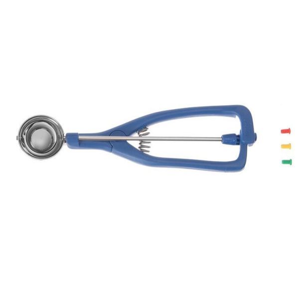 Ложка для мороженого, шариковой формы, выполнена из нержавеющей стали с ручками из полиамида. Продуктивность - 1/60 литра.