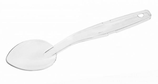 Ложка для сервировки блюд и ручка выполнены из поликарбоната, это легкий материал, который выдерживает температуру до 210 °C. Он достаточно прочный, что позволяет изделиям из него справляться с различными видами продуктов.