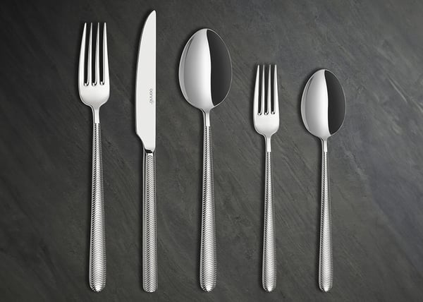 Коллекция столовых приборов Bonna Illusion выполнена в элегантном неподвластном стиле времени. Приборы этой серии отличаются от других тем, что украшены классическими полосатыми узорами, оттесненными на всех предметах.