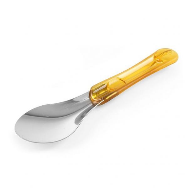 Ложка для мороженого, шариковой формы, выполнена из нержавеющей стали, ручка из тритана, желтая. Продуктивность - 1/55 литра.