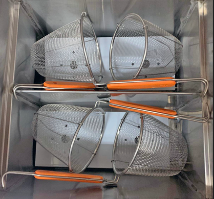В каждую ванну помещается сетчатая отварная корзина, наполненная водой, имеющая термостойкую пластиковую ручку.