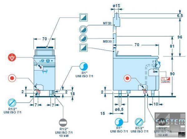 Макароноварка Angelo Po 0G1CP1G с прямым газовым нагревом относится к тепловой модульной линии GAMMA 700. Поверхность из 18-10 нержавеющей стали, толщиной 12/10 мм.