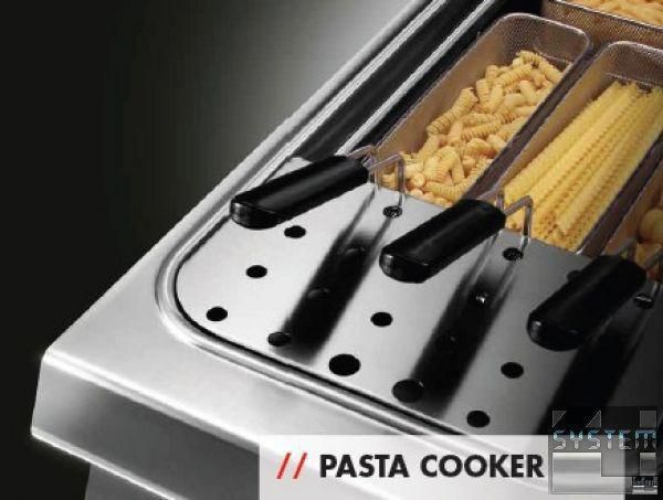 Макароноварка на две ванные по 40 л Angelo Po 191CP2G c газовым нагревом на встроенном нейтральном нижнем отделении относится к тепловой модульной линии ALPHA 900.
