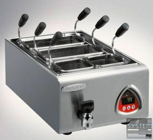 Макароно/пельменеварка с 1 ванной на 15 л. Angelo Po 6CP относится к тепловой модульной линии CONCEPT 600. Подходит для установки на рабочие столы, стенды, холодильные или тепловые столы. Компоненты модульной линии оборудованы системой принудительного охлаждения и контроля за безопасностью, чтобы гарантировать эффективность и продолжительность службы оборудования. Структура из 18-10 нержавеющей стали, толщиной 10/10 мм с закругленными углами.