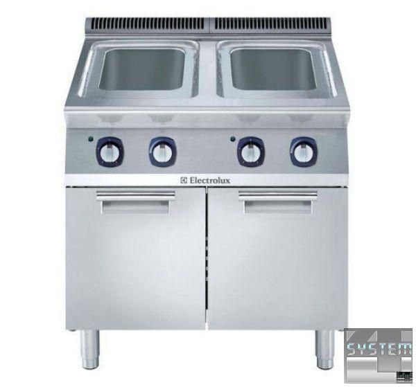 Универсальный варочный аппарат Electrolux e7pceh2kf0 имеет две ванны объёмом по 24,5л, система нагрева с инфракрасными тэнами, система плавной регулировки мощности нагрева EnergyControl, оснащен краном подачи воды, исполнение на закрытом основании. Имеет напольный способ расположения, толщина металла рабочей поверхности апарата 1,5 мм. Макароноварка имеет габаритные размеры: 800мм (длина), 730мм (глубина), 850мм (высота) и весит 55кг. Устройство питается от трехфазной сети с напряжением 400В и частотой 50 Гц. Оснащена индикатором работы и контроля напряжения. Рабочая поверхность из нержавеющей пищевой стали AISI 304 с полировкой Scotch Brite.