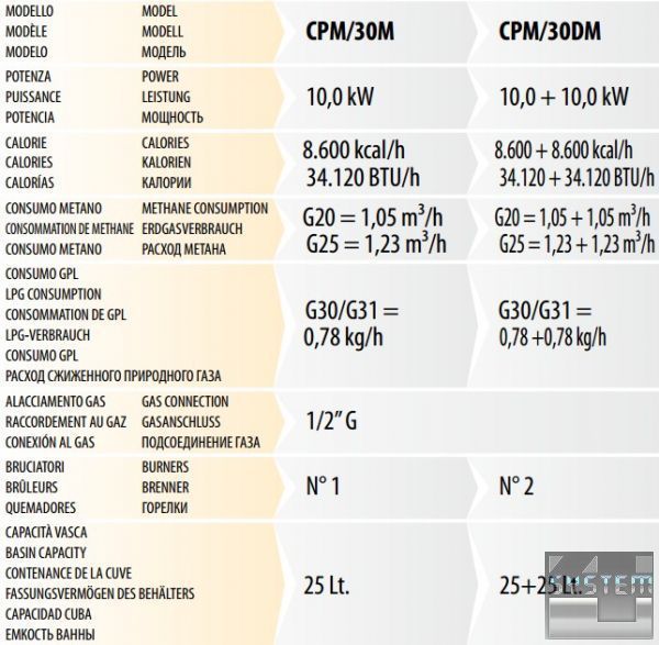 - высокопроизводительные горелки из нержавеющей стали с оптимизацией процесса горения, расположенные под емкостью и оснащенные защитным клапаном и термопарой;