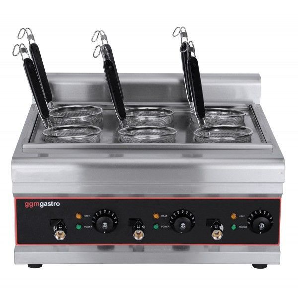 Макароноварка GGM NKJ6 идеально подходит для одновременного приготовления широкого ассортимента различных видов изделий из теста: пасты, макароны, вермишель, лапша, спагетти, пельмени и вареники. Это оборудование незаменимо на кухнях ресторанов со средиземноморской, прежде всего итальянской, кухней.Также макароноварка предназначена для отваривания макаронных изделий, хинкали, пельменей и т.п. на предприятиях общепита – в кафе, ресторанах, столовых и заведениях фаст-фуда. Особенность макаронаварки в возможности быстрого приготовления пасты, а также в поддержании постоянного уровня воды.