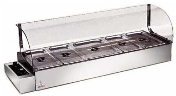 Максимальная глубина гастроемкости - 100мм. Температура от + 30-90ºС. Расчитан на 5 гастроемкостей размером: 4хGN 1/3 - 3шт, GN 1/2 -1шт.