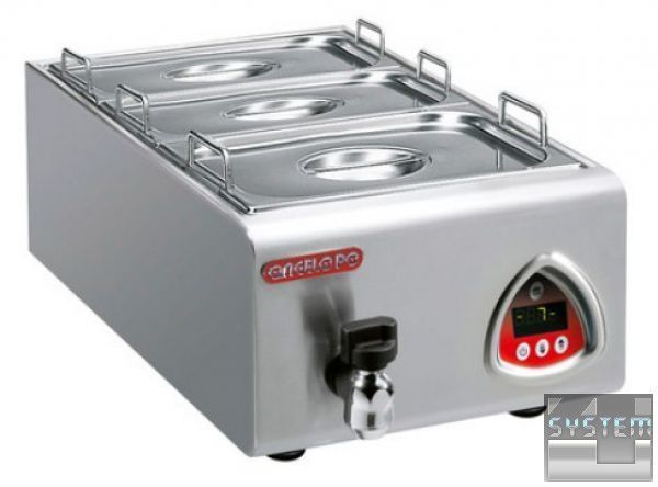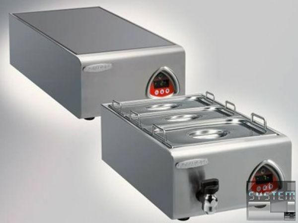 Мармит рассчитан на гастроемкости 1/1 GN глубиной до 100 мм. Нагрев осуществляется непрямым способом (посредством водяной бани) в пределах от 30 до 100°C и контролируется термостатом. Изготовлен из нержавеющей стали марки AISI 304.