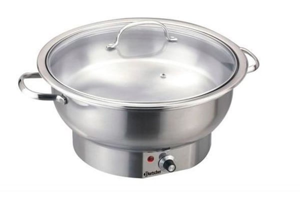 Чафиндиш для кейтеринга гладкой отделки выполнен из нержавеющей стали, благодаря использованию высококачественного материала и элегантной отделке, мармиты подчеркивают качество блюда.