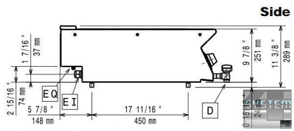 Фри-мармит Electrolux e7bmehb000 имеет одну ванну под 1хGN2/1 глубиной до 150 мм, непрямой нагрев, термостатный контроль температуры +30…+90°C, сливной кран, закруглённые углы ванны, наполнение в ручную. Имеет настольный способ расположения и может монтироваться на поверхность на 4 ножки из нерж. стали, толщина металла рабочей поверхности апарата 1,5 мм. Мармит имеет габаритные размеры: 800мм (длина), 730мм (глубина), 250мм (высота) и весит 27кг. Устройство питается от сети с напряжением 400В и частотой 50 Гц. Рабочая поверхность из нержавеющей пищевой стали AISI 304 с полировкой Scotch Brite.