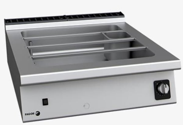 Работает по принципу паровой бани, когда вода нагревается ТЭНом, а пар которые образуется при нагревании, подогревает вместимое гастроемкости. Это позволяет равномерно нагревать емкости без пересушивания и пригорания подогреваемых блюд.