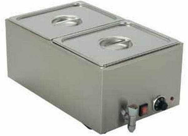 Мармит оснащен корпусом из нержавеющей стали, что поможет с легкостью чистить оборудование, и является идеальным материалом для поддержания санитарно - гигиеничных норм. Кроме того, данная модель с краном для слива жира.