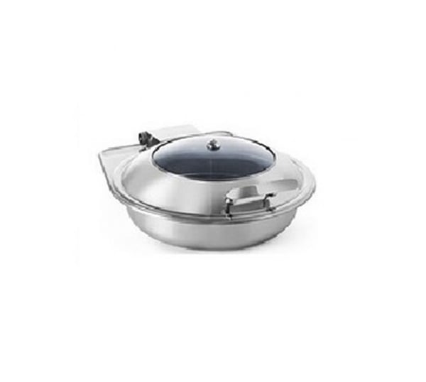 Емкость сделана из нержавейки, круглая форма Ø390x64 мм, так же мармит оборудован откидной, плавно закрывающейся крышкой, в которой размещено стекло ( Ø260 мм) и отверстие для выхода пара.