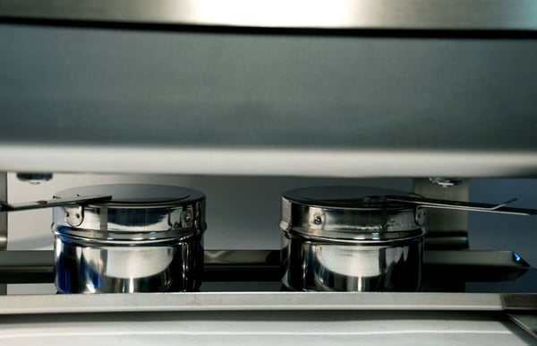 Опционно можно установить электрический нагревательный элемент. В комплекте поставляется одна емкость GN1/1 65 мм и два бачка для горючего.