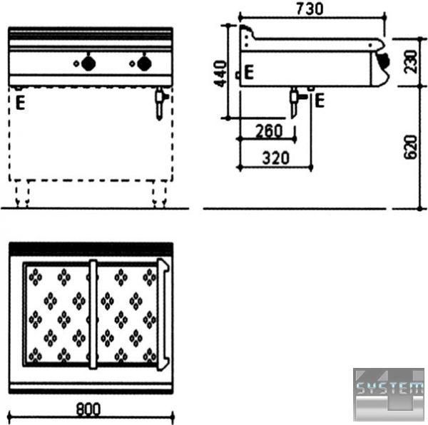 Температурный режим 30-90ºС. Основная часть сделана из сатинированного хромоникелевого листа 18/8 н/с, а внутренние принадлежности – из алитированного листа. Н/с резервуар пригоден для вставки в контейнеры НГ. Многоуровневый термостат регулируется в пределе 0-110° C, а также имеется защита от перегрева. Основной переключатель используется для подачи или прекращения энергии. Все электрические механизмы и приборы соответствуют международным стандартам. Пригодна для расположения со шкафомдля многофункционального использования или на консольном основании для установок изолированного типа. В комплект гастроемкости не входят.