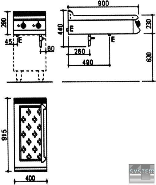Температурный режим 30-90ºС. Основная часть сделана из сатинированного хромоникелевого листа 18/8 н/с, а внутренние принадлежности – из алитированного листа. Н/с резервуар пригоден для вставки в контейнеры НГ. Многоуровневый термостат регулируется в пределе 0-110° C, а также имеется защита от перегрева. Основной переключатель используется для подачи или прекращения энергии. Все электрические механизмы и приборы соответствуют международным стандартам. Пригодна для расположения со шкафомдля многофункционального использования или на консольном основании для установок изолированного типа. В комплект гастроемкости не входят.
