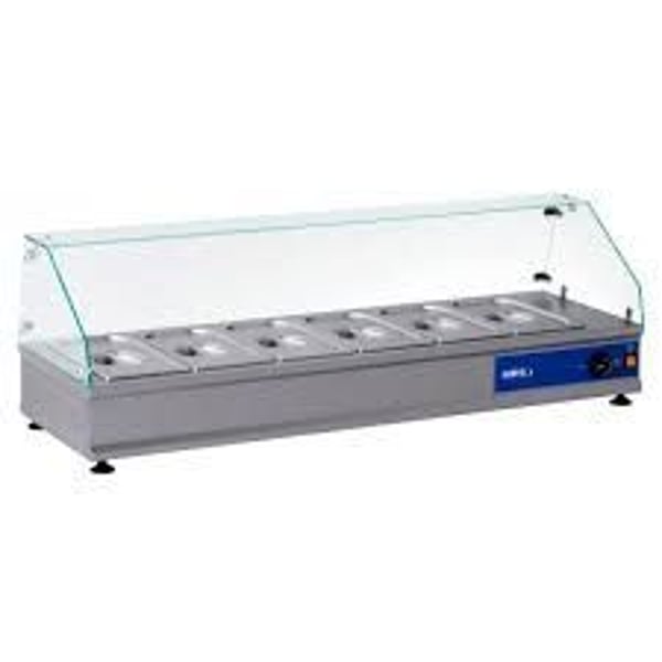 Мармит настольный модель ВТН-6-1220 выпускается с 6-ю гастроемкостями GN 1/3, h 65 и прямым фасадным стеклом. Удобный доступ к блюдам.