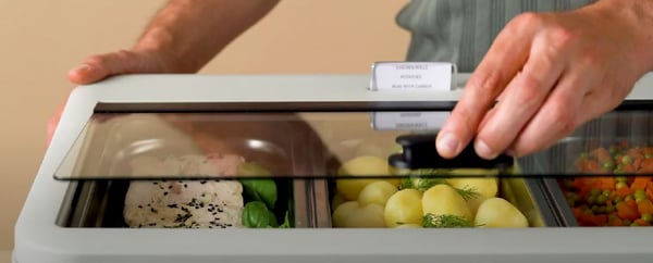 Специальная двухкомпонентная конструкция крышки уменьшает потери тепла при открывании. Также на крышке встроен держатель для карточек с названиями продуктов.