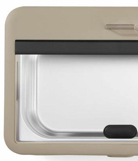 Специальная двухкомпонентная конструкция крышки уменьшает потери тепла при открывании. Также на крышке встроен держатель для карточек с названиями продуктов.