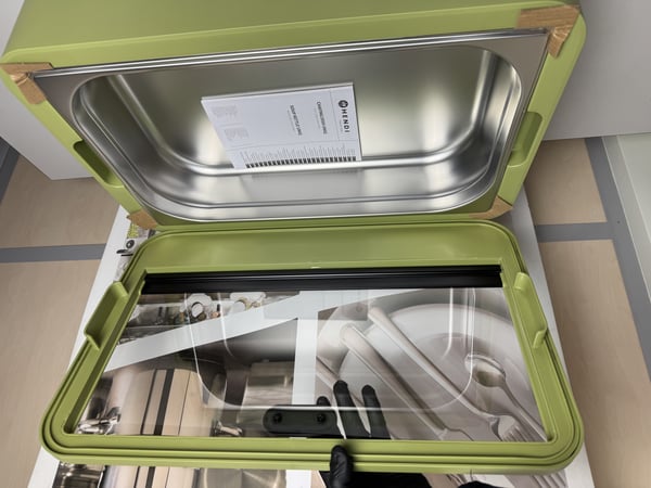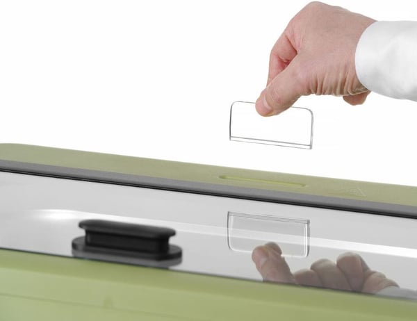 Специальная двухкомпонентная конструкция крышки уменьшает потери тепла при открывании. Также на крышке встроен держатель для карточек с названиями продуктов.