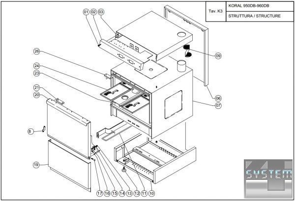 Линейка Koral Line объединяет 18 фронтальных и 5 купольных посудомоечных машин. Фронтальные модели Koral Line во многом повторяют линейку Cube Line. В отличие от моделей Cube Line, у аналогов из линейки Koral Line есть встроенные дозаторы моющего и ополаскивающего средств, нагнетающий и сливной насосы (встроенные) а также термостоп, предусмотрены встроенные термометры для рабочей камеры и бойлера.
