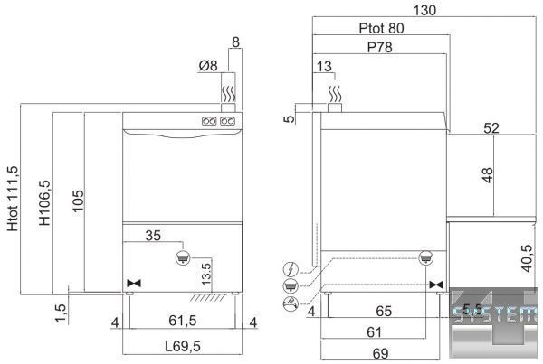 | Рекомендуемый подвод воды: | +55°C |