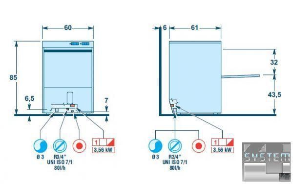 Технические характеристики машины посудомоечной фронтальной Angelo Po KD60MPSA: