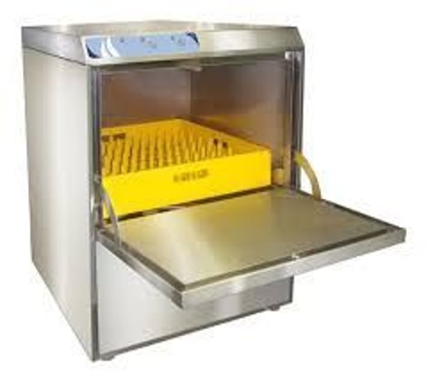 Моющаяся посуда располагается в пластмассовой кассете размером 50 х 50 см. Кассета устанавливается в машину и закрывается дверцей.