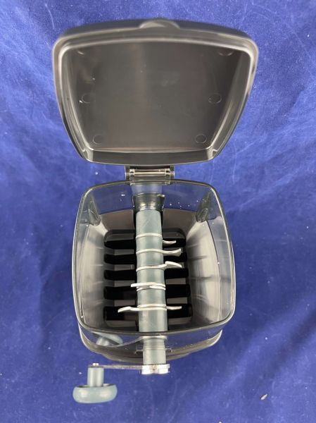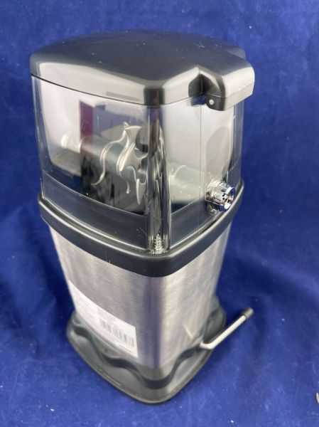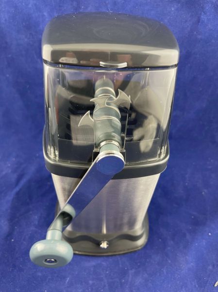 Корпус и ножи льдокрошителя изготовлены из нержавеющей стали, контейнер для готовой крошки из прозрачного поликарбоната. Резервуар для загрузки льда расположен сверху.
