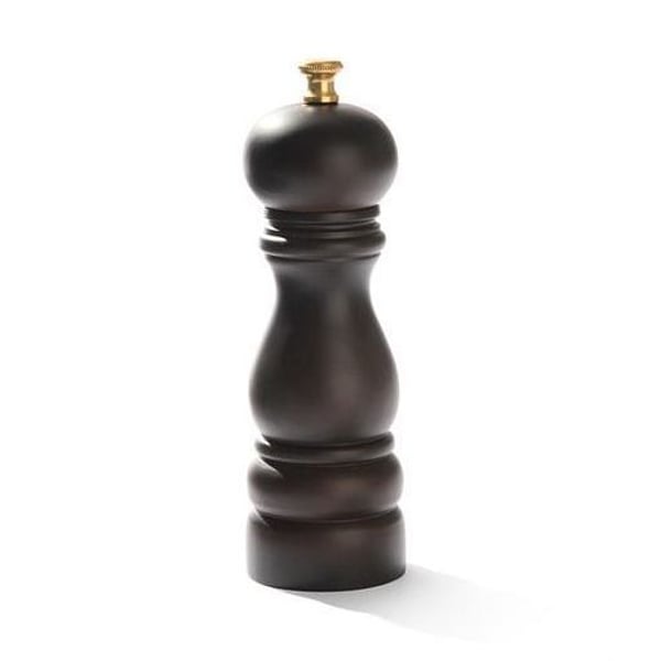 Мельница для перца, ручная, изготовлена из дерева, коричневого цвета.