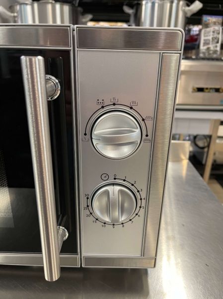 Печь микроволновая имеет электромеханическое управление. Корпус выполнен из нержавеющей стали, 6 уровней мощности. Таймер - 30 минут.