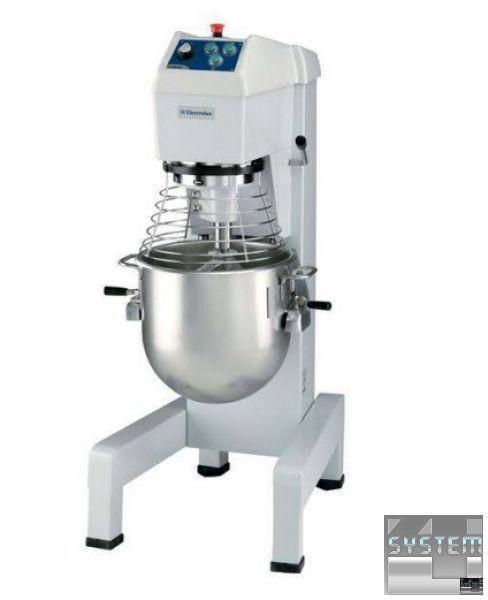Специализированный миксер планетарный Electrolux 603529 с возможностью замеса теста - напольный, 1 съёмная дежа из нержавеющей стали емкостью 40л., рычаг для подъема и опускания дежи, 3 насадки в комплекте - крюк, лопатка и усиленный венчик, электро-механическая панель управления, мощный двигатель и трансмиссия, таймер, защитная решетка