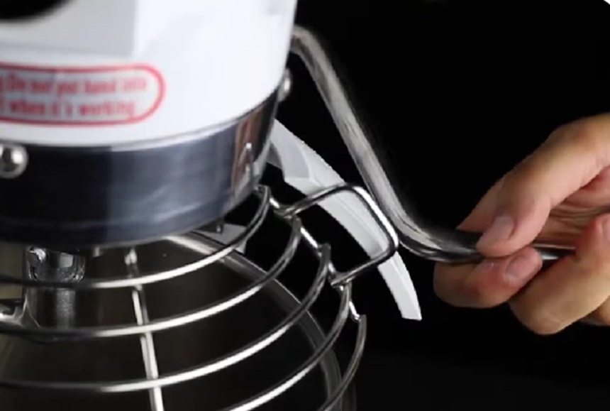 Миксер оснащен рукояткой для поднятия/опускания чаши.