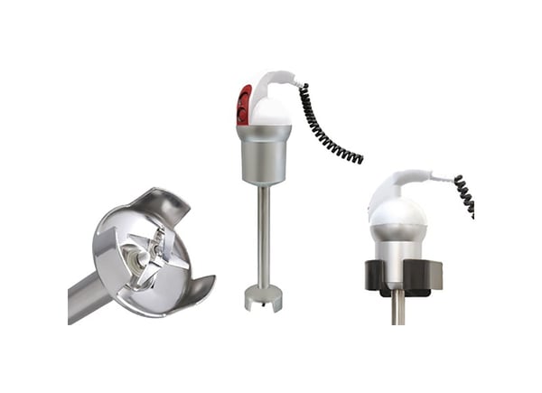 Блендер работает с переменной скоростью от 15.000 до 20.000 об/мин; это делает его идеальным для пюрирования, эмульгирования и взбивания.