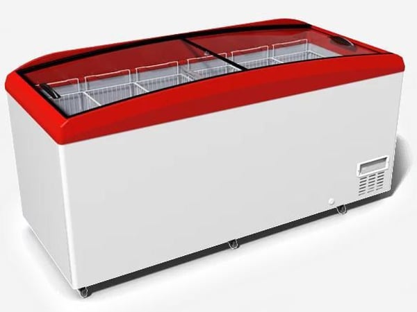 Морозильник оснащен гнутым стеклом и энергосберегающей LED-подсветкой, корона оборудования изготовлена из прочного и ударопрочного ABS — пластика с защитным покрытием РММА.