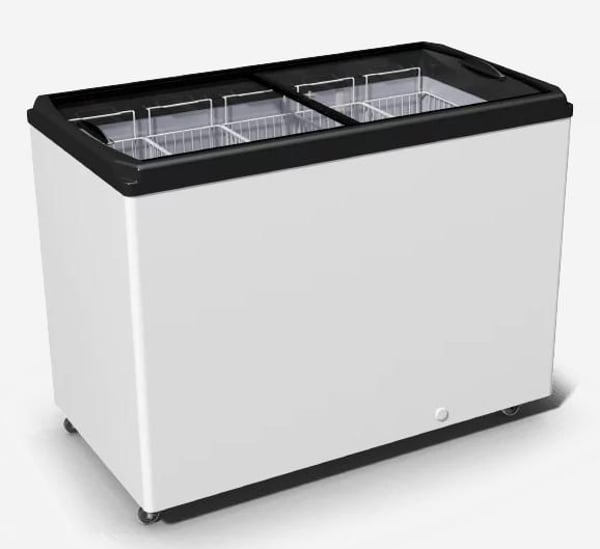 Заморозка в морозильном ларе производится равномерно со всех сторон, в то время как охлаждение витрины расположено лишь с одной стороны. Оборудование энергоэффективное и надежно работает при температуре окружающей среды до +35°C.