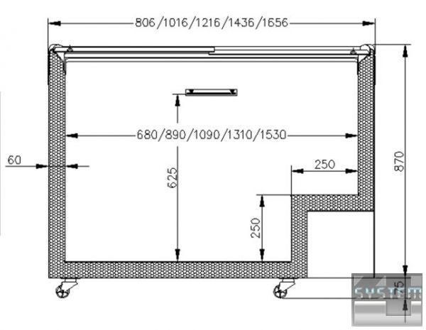 Заморозка в морозильном ларе производится равномерно со всех сторон, в то время как охлаждение витрины расположено лишь с одной стороны. Оборудование энергоэффективное и надежно работает при температуре окружающей среды до +35°C.