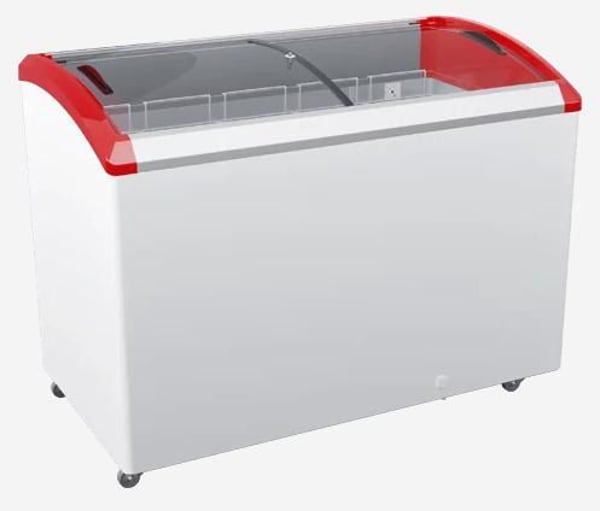 Морозильник оснащен гнутым стеклом и энергосберегающей LED-подсветкой, которая встроена в корону и не занимает дополнительного объема и не препятствует загрузке продукции.