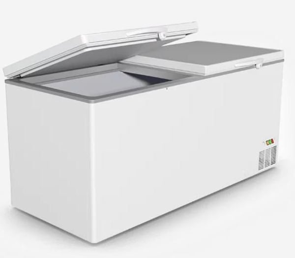 Особенностью данной модели ларя является одно отделение для хранения продуктов и две крышки для удобства использования.
