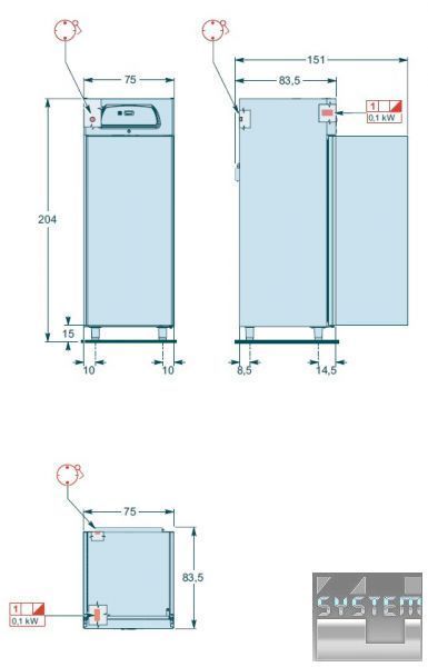 Модели с индексом “..R” предназначены для подсоединения к удаленному холодильному агрегату Angelo Po, который можно заказать дополнительно (максимальное расстояние до шкафа – 10 метров).