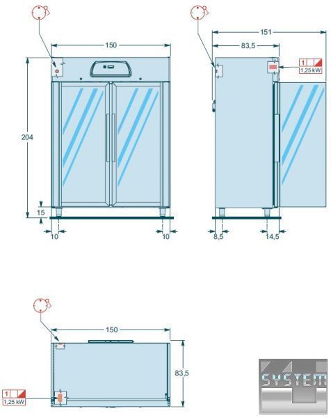 6 полок с 20 закладными под направляющие легко демонтируется для очистки внутреннего объема шкафа.