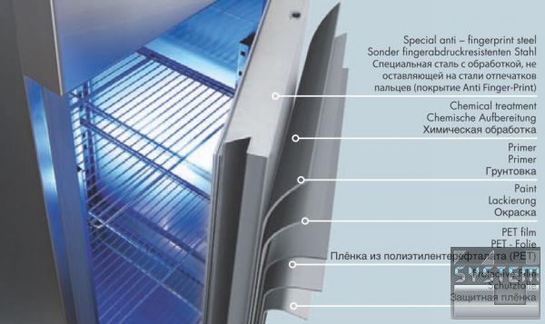 - Несущий корпус из нержавеющей стали AISI 304 с полиуретановой изоляцией толщиной 75 мм без использования FC